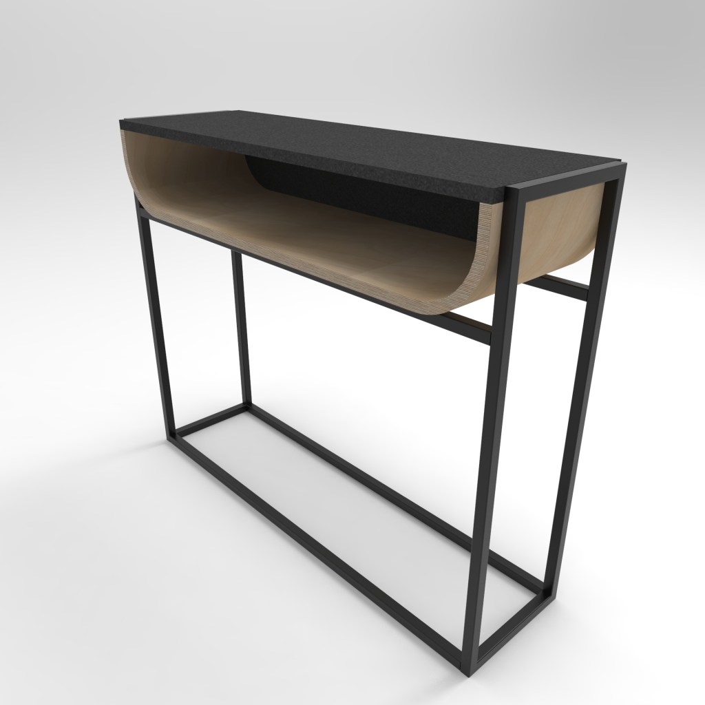 Console en carré 10 mm acier avec son plateau en verre trempé découper à la forme extérieure.