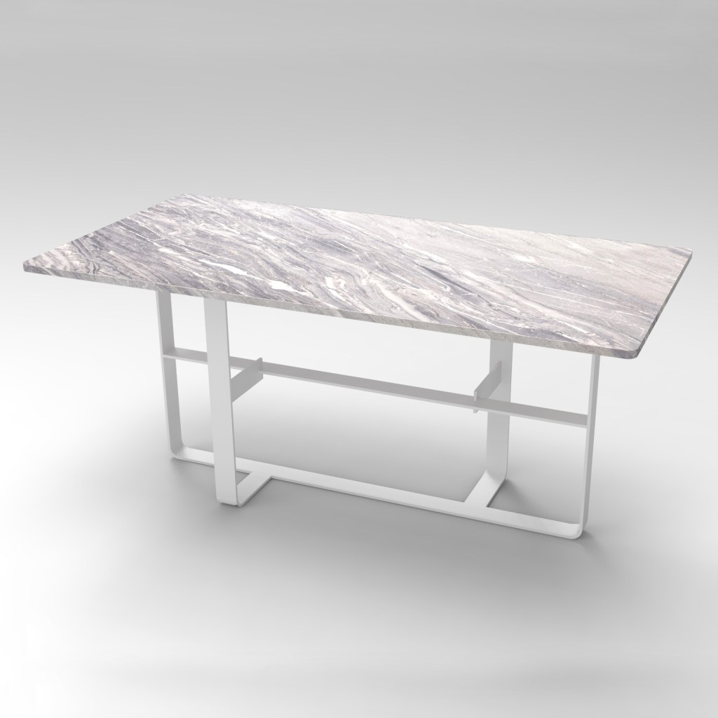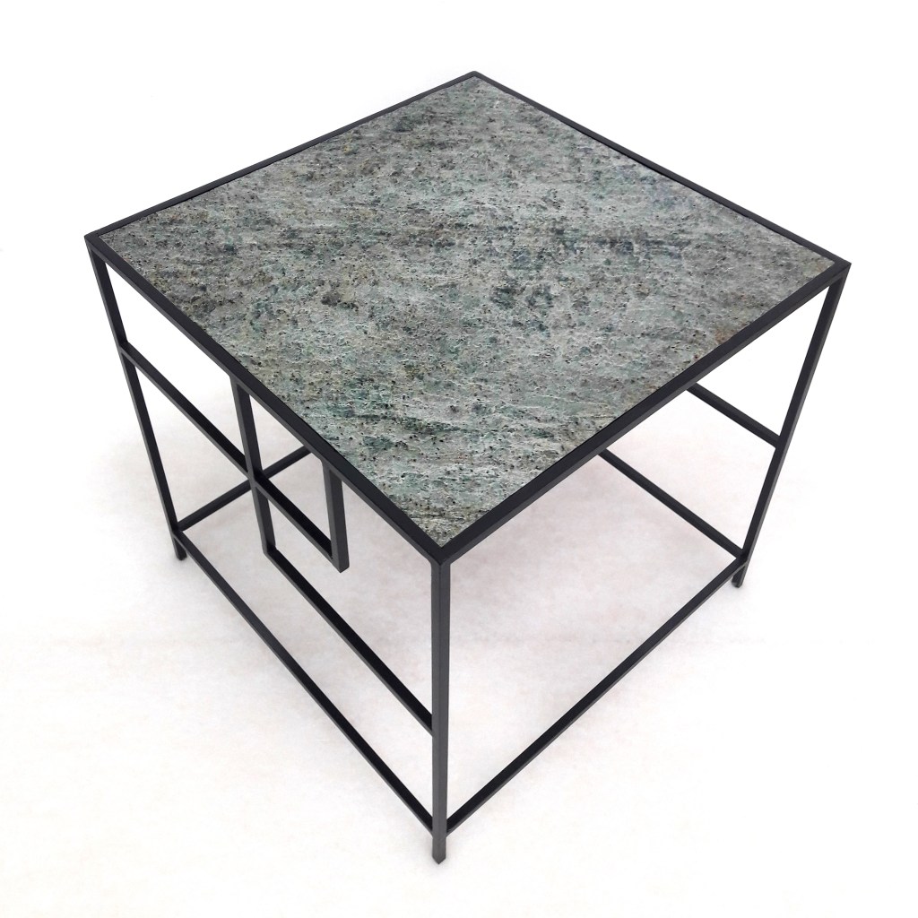 Table basse en tube acier et plateau en feuille de pierre naturelle .